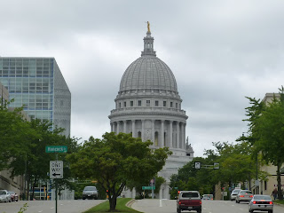 We turn another corner and the gorgeous Capitol building looms large ahead of us. It’s encircled by a bustling farmers’ market and I feel like a Pamplonian bull when I see the stunned look of the shoppers as we go stampeding by. As we leave the Capitol area we are treated to some downhill. I hear a guy say “Make hay while the sun shines.” I couldn’t agree more.