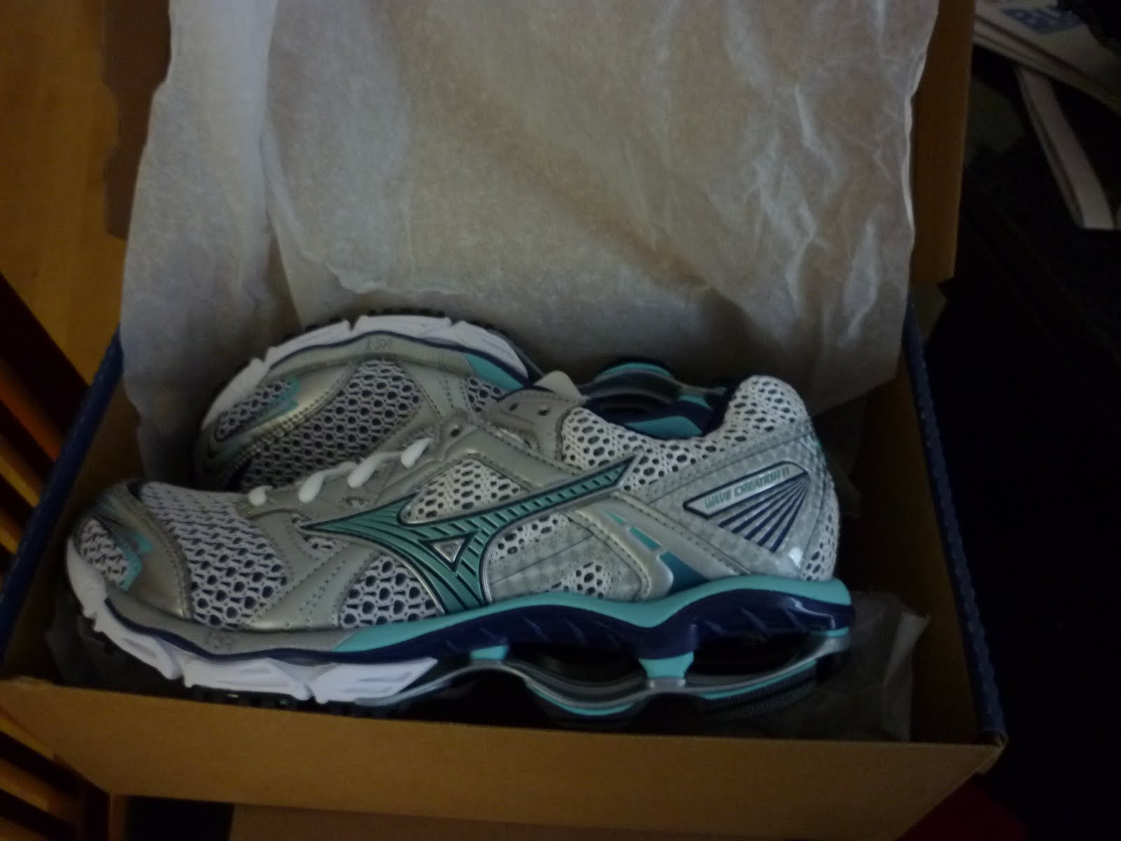 As you know I’ve been patiently waiting for my marathon shoes to show up. The big day is exactly 1 MONTH FROM TODAY! Waaaiiit! I’m so not ready! Around lunchtime I heard my Drew Carey lookalike UPS guy come rolling into the neighborhood, his bad 80’s music thumping away.