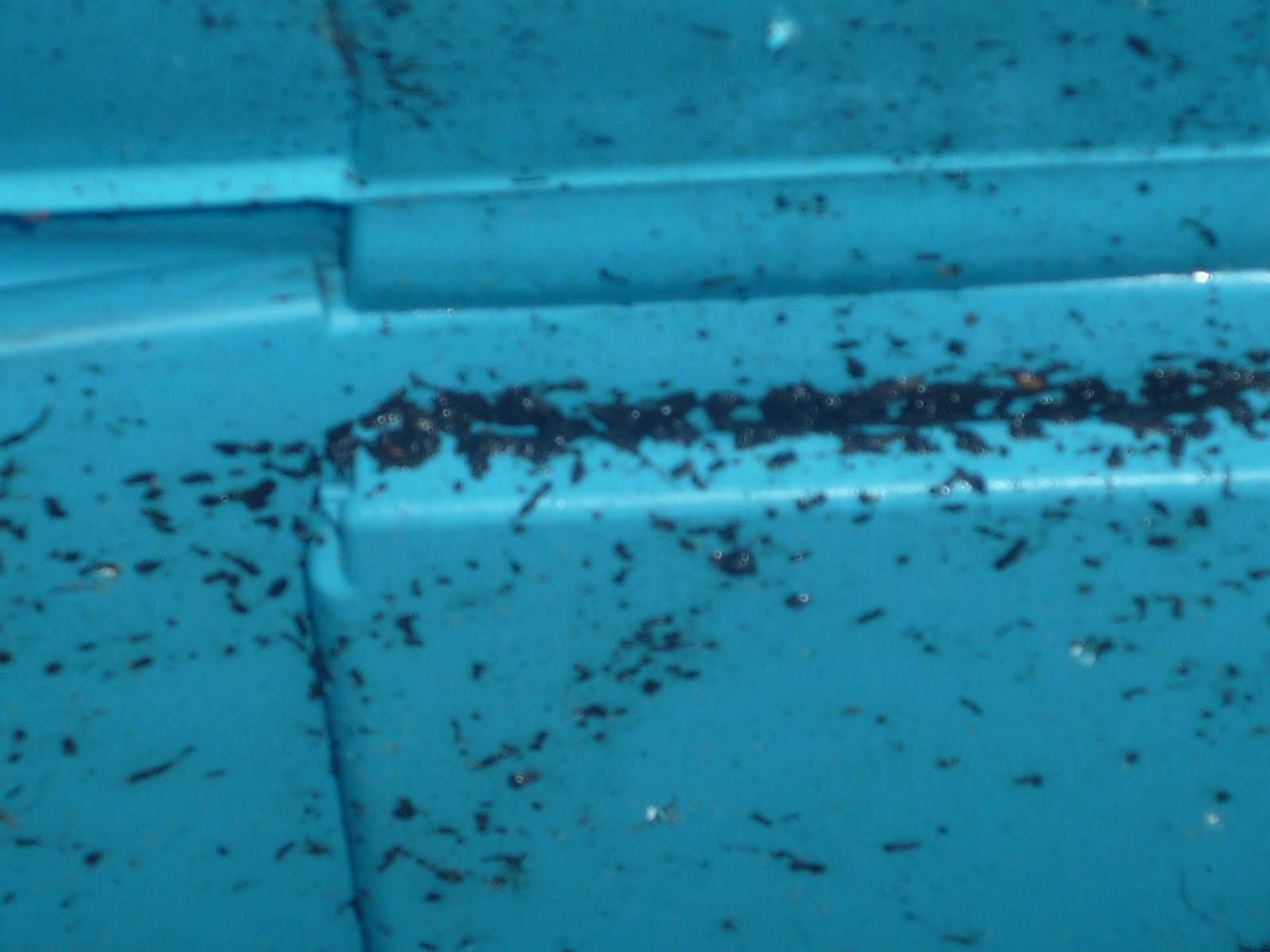 Apparently this indicates the balance of ‘green’ (kitchen scraps) and ‘brown’ (paper and yard clippings) are off. After adding more shredded newspaper and some garden waste, the worms have retreated and things seem to be back in balance.