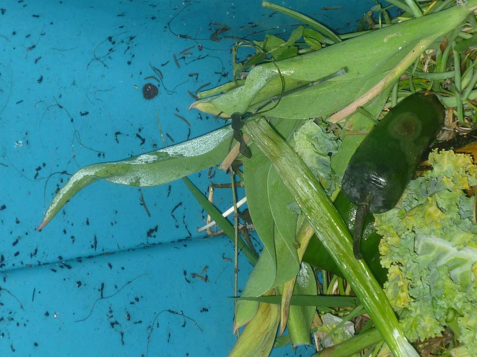 Much to my delight….not….soon after the worms were added, I noticed many of them were coming up to the top of the bin–eeeeew!