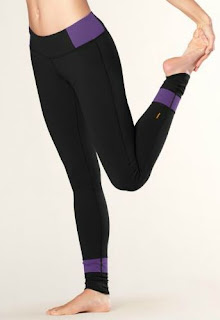 This awesome yoga pant is made of the same fabulous, moisture-wicking powermax fabric with flat-locked seams as the leggings I reviewed. The elliptical waistband looks low-rise in front but stays up over your bum in back.