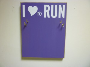 Love your race shrine! I don’t have anything like that. Me medals are in a box along with all of my bibs. (Pitiful, I know.) I figure some day I’ll get a medal hanger and I plan on creating a race scrapbook for my bibs.