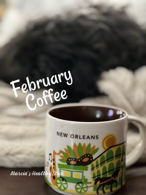 Since we just celebrated Mardi Gras, I figured I’d pull out my NOLA Starbucks mug to join Deborah, Coco and you for a little sit-down and catch-up session. While I’m going to skip the king cake, I will enjoy some Harbor Dog blend from my favorite coffee roaster in Maine, with a scoop of collagen and a splash of half & half. What’ll you have?